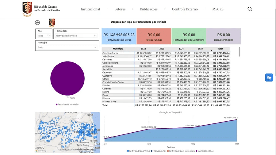 Ano passado os municípios paraibanos gastaram R$ 63 milhões com festividades no verão, período de carnaval 📸 © Reprodução/Tribunal de Contas da Paraíba