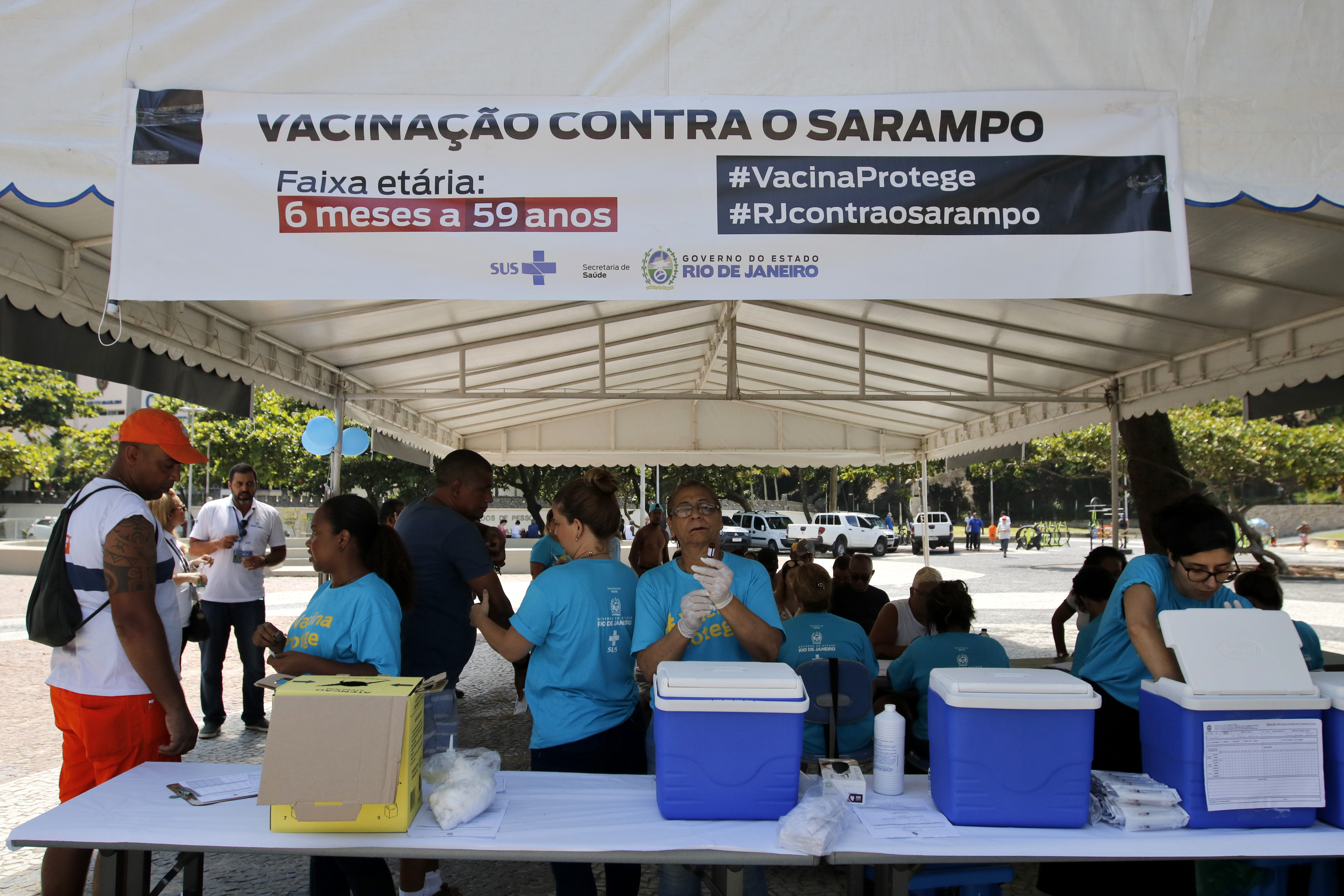 Primeiro dia da campanha estadual do Dia D de Vacinação Contra o Sarampo no Rio de Janeiro, caminhão itinerante da Secretaria Estadual de Saúde 📸 ©Tânia Rêgo/Agência Brasil